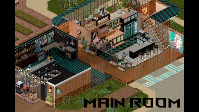 - Дизайн в стиле Hatsune Miku — тематическая мебель, элементы декора и визуальная стилизация.