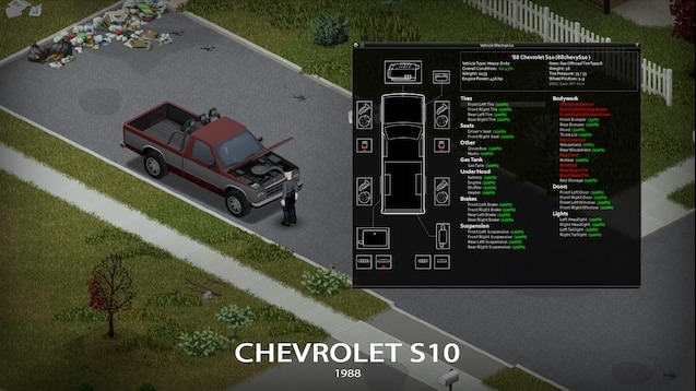 Мод ’88 Chevrolet S10 идеально подойдет тем, кто ценит атмосферу ретро и функциональность. Надежный, проходимый и визуально аутентичный пикап добавит в Project Zomboid дух американских дорог конца XX века, а гибкая система апгрейдов позволит превратить его в полноценный транспорт для выживания.