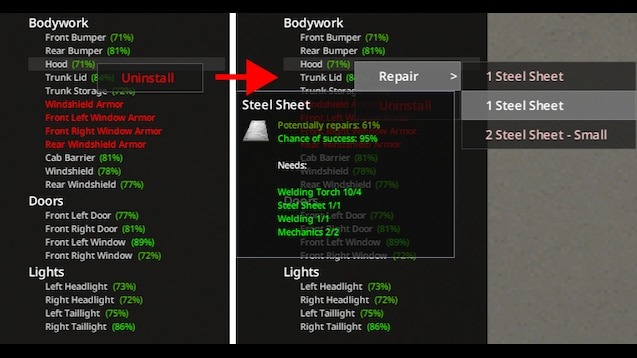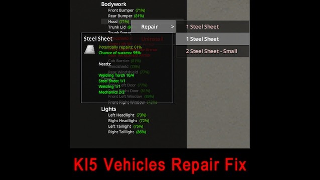 Описание [B42] KI5 Vehicles Repair Fix
