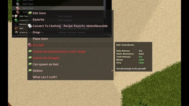 - Полотенца теперь относятся к категории Clothing, а не Drainable, но их нельзя надевать.