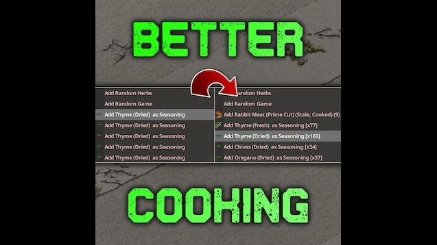 Better Cooking — это мод для Project Zomboid, направленный на улучшение и упрощение работы с готовкой, особенно с развиваемыми рецептами. Он перерабатывает контекстное меню приготовления пищи, делая его чище, удобнее и ближе к логике ванильной игры, а в будущем возвращает полнофункциональный интерфейс готовки в классическом стиле. Мод особенно полезен при большом количестве ингредиентов и специй, устраняя хаос в списках и экономя время игрока.