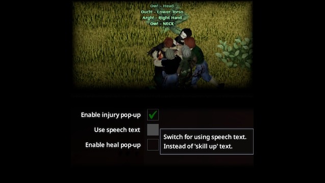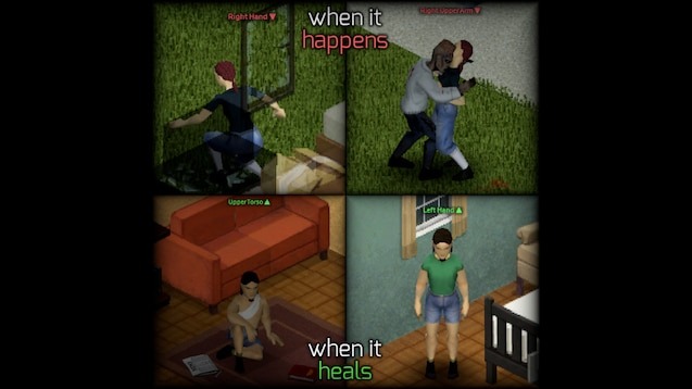 Injury Indicator — мод для Project Zomboid, который показывает всплывающие сообщения над персонажем при получении повреждений. Он отслеживает все части тела и любые источники урона, а также может уведомлять о моментах заживления. Обновлён для Build 42.