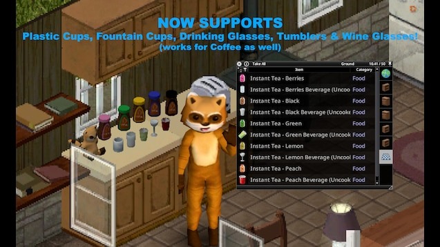 Instant Tea — мод для Project Zomboid, добавляющий моментальный чай шести вкусов, коробки для их хранения и расширяющий систему приготовления напитков. Он делает чай полноценным элементом выживания: повышает настроение, восполняет калории и даже заменяет сахар в кулинарии.