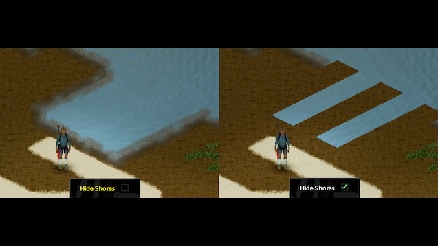 - Можно включить отображение береговой линии у водных клеток, созданных из рвов (эффект «плавательного бассейна»).