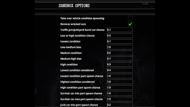 Мод можно добавить в уже существующее сохранение, детали будут корректно появляться в машинах. - Настройки песочницы: