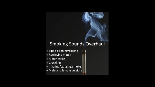Smoking Sounds Overhaul заменяет стандартные звуки курения сигарет и сигар на более реалистичные и детализированные эффекты. Оригинальные звуки в игре звучали слишком просто, и этот мод решает эту проблему, добавляя шесть новых эффектов для каждого пола. Теперь каждый раз, когда персонаж курит, можно услышать звуки открытия и закрытия зажигалки Zippo, щелчок спички, лёгкое потрескивание табака и выдох дыма — всё для создания правдоподобного, атмосферного опыта.