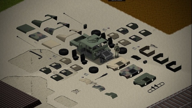 Мод расширяет транспортную систему Project Zomboid, добавляя армейский M998 HMMWV с полностью анимированными дверями, капотом, багажником и рабочей турелью. Реализована отдельная баллистическая система, которая рассчитывает энергию каждого выпущенного снаряда, его пробивную способность и взаимодействие с объектами на пути — от тел зомби до стен и автомобилей.