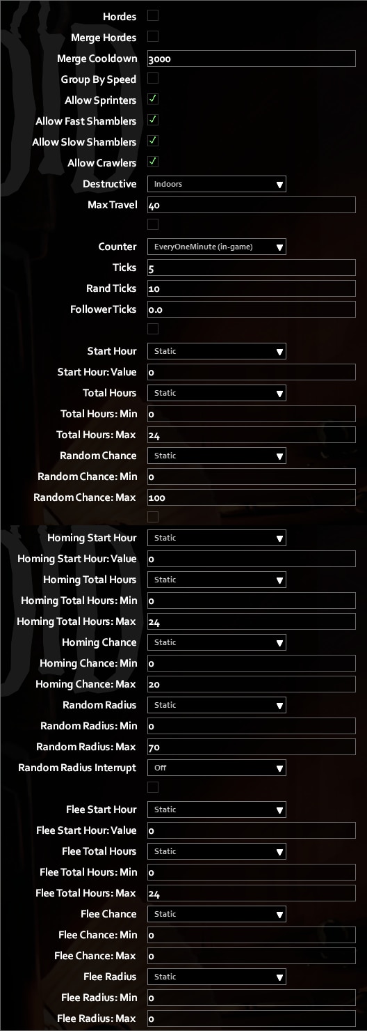 - Уменьшите численность зомби и их зрение в настройках Zombie Lore.